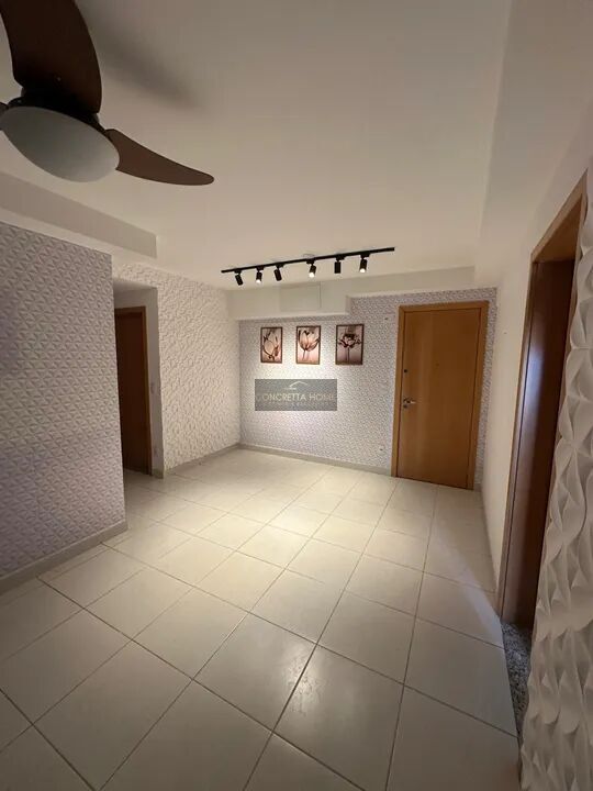 1 Sala de estar, Iluminação em led embutida, cortinas, parede em gesso, papel de parede, ventiladores de teto nos quartos e na sala, móveis planejados;