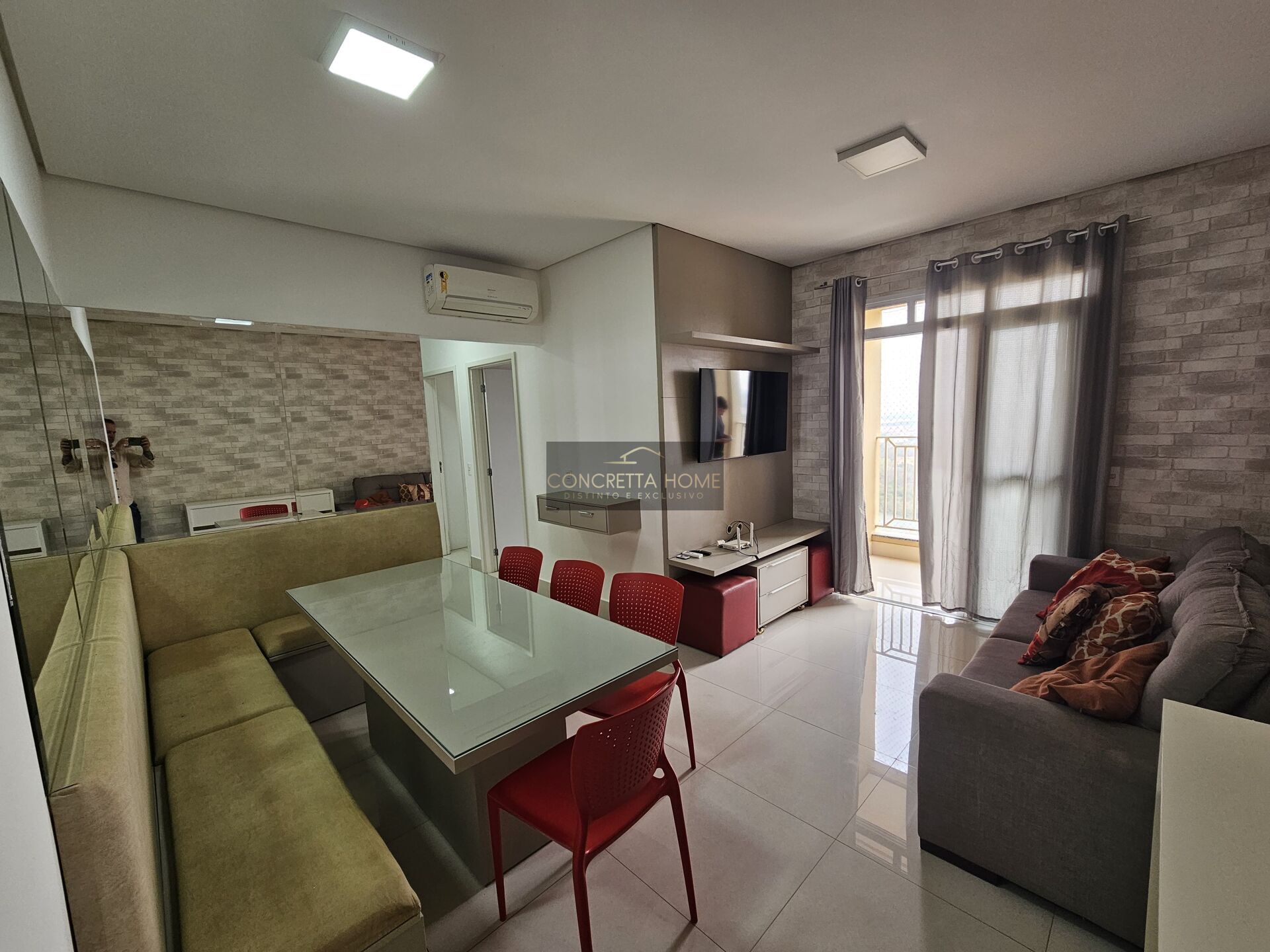 completo de planejados, luminárias, ar condicionado, cortinas.