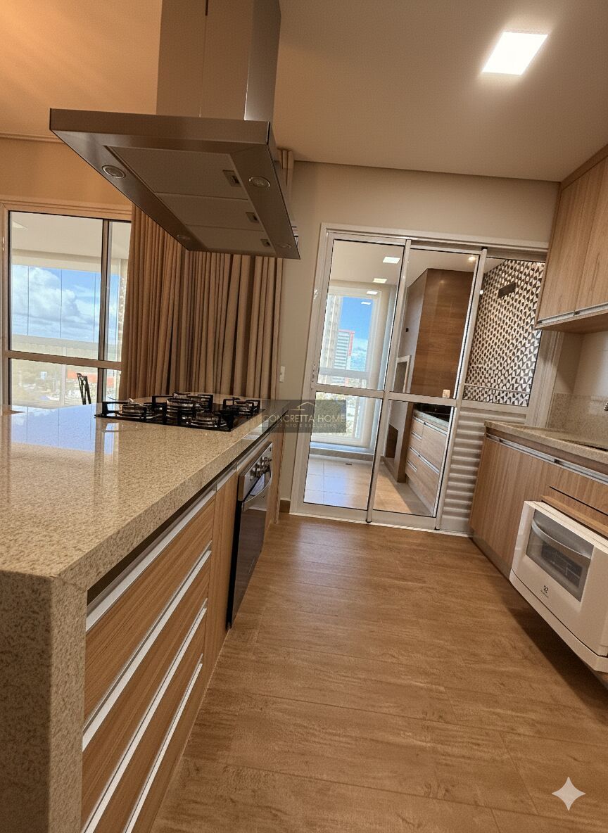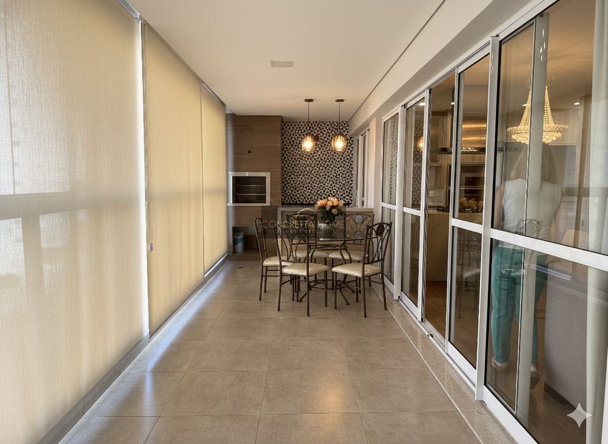 3 suites plenas, sala para 3 ambientes, cozinha gourmet com ilha, sacada gigante com churrasqueira e com cortinha de brindex, cortinha retratril