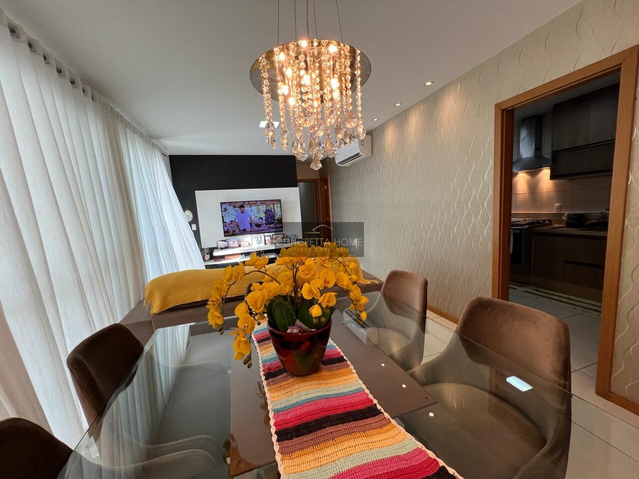- Varanda Gourmet: Sacada com cortina de vidro e persiana rolô, ideal para momentos de relaxamento.