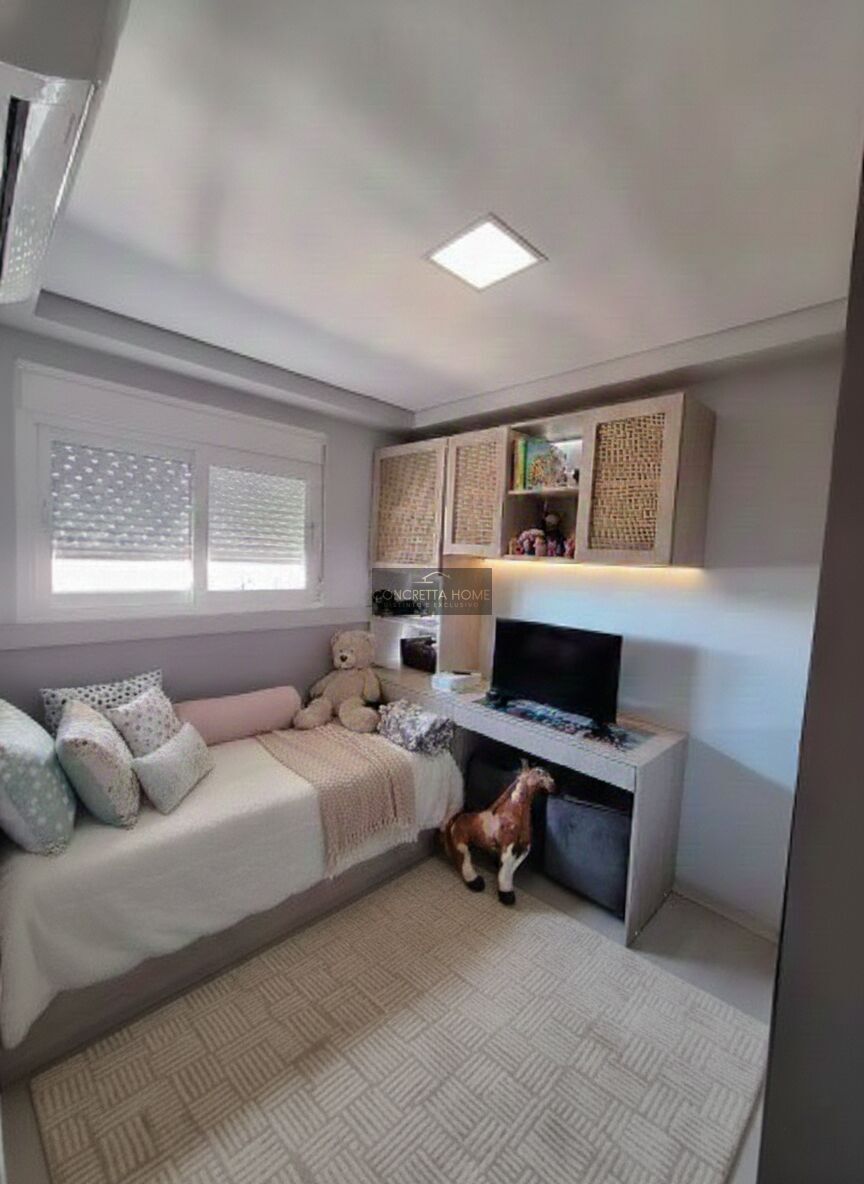Sala de TV com escritório todo planejado.