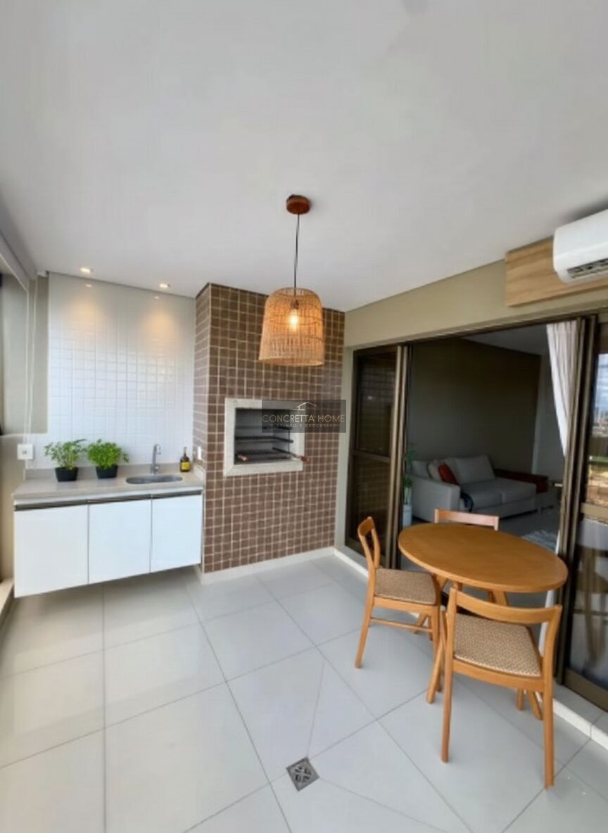 Sacada gourmet com churrasqueira , cortina de vidro, persianas e ar split