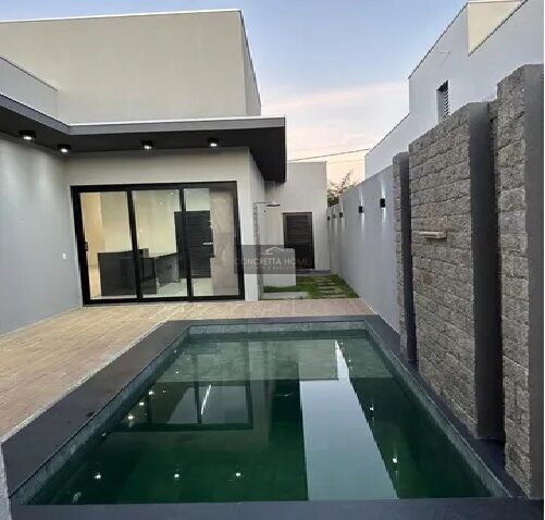 Piscina com cascata em pedras , deck e iluminação . Chuveirão . Pre instalação de ar condicionado ( 6 pontos) . Esquadrias em Aluminio na cor preta . Iluminação toda em Led .