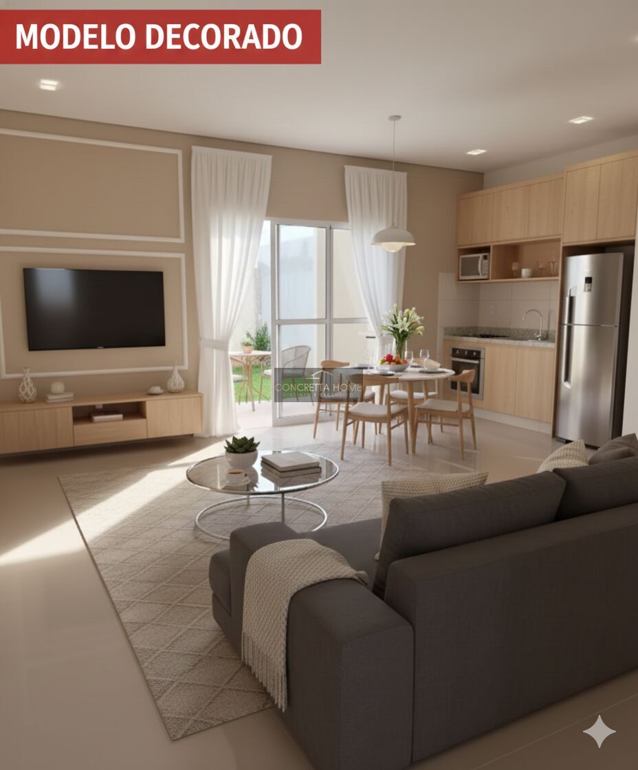 casas com área construídas de 100,48m², sala para 02 ambientes, garagem coberta